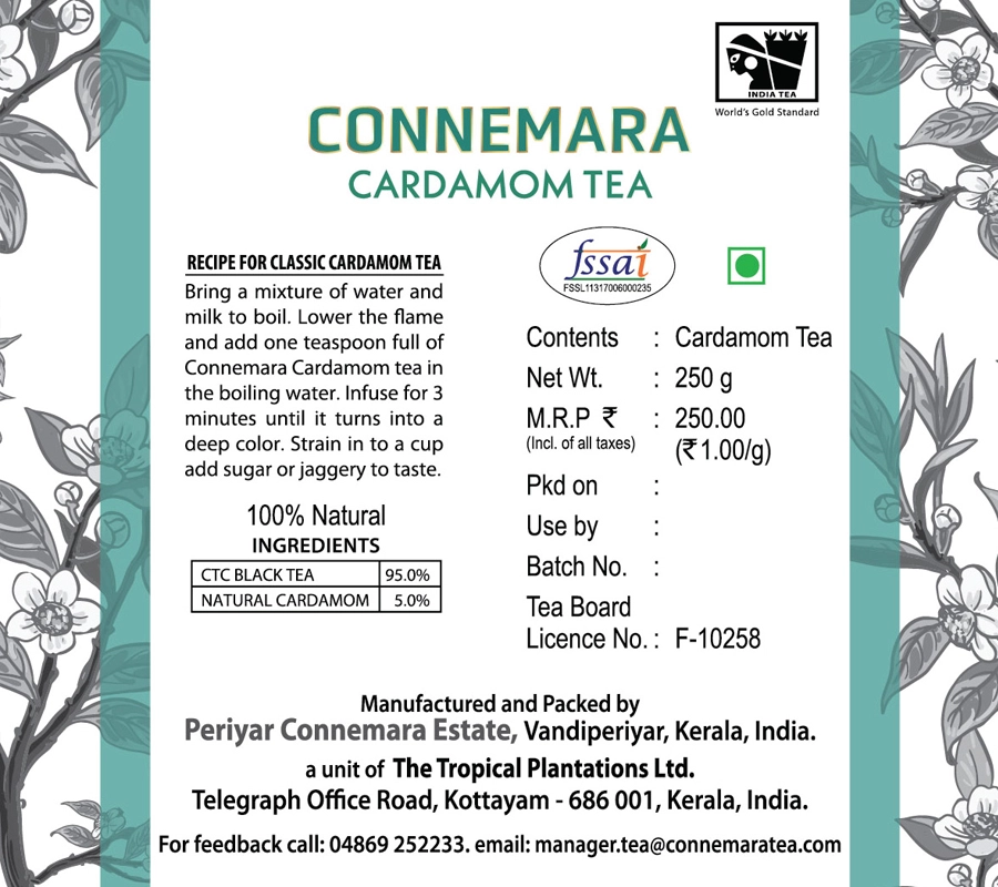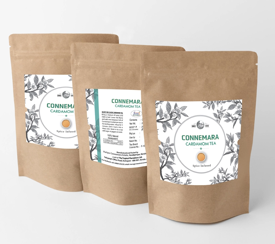 Cardamom is grown extensively in the hills of the Western Ghats in India, particularly in the Idukki ranges of Kerala. Some of the most fragrant cardamom comes from this region. Periyar Connemara Estate is surrounded by Cardamom esatates & the best cardamom is sourced from around, mixed with our own tea to provide an extra-ordinary cup.